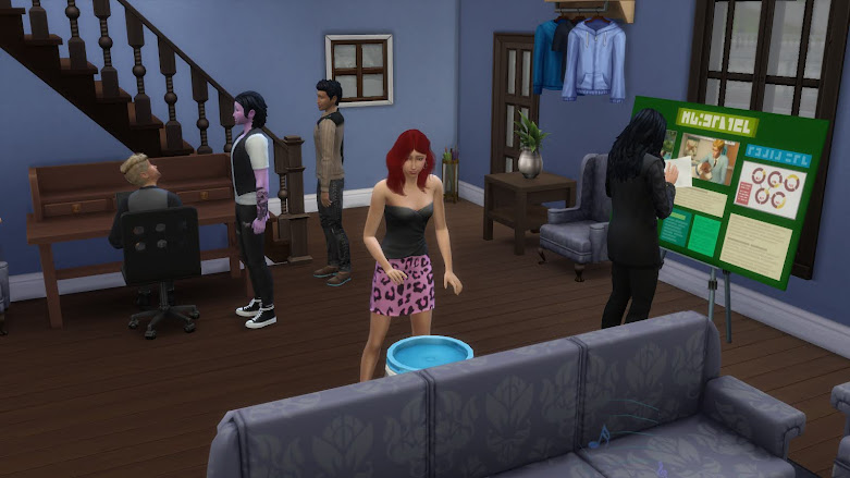 "I've got a headache from all the loud music last night, and clean this place up! It was your party after all nut!"